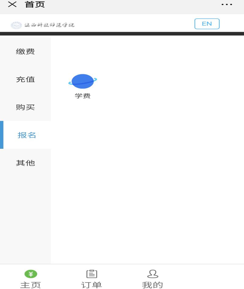 然后进入如下界面,点击“报名“——选择“学费”。