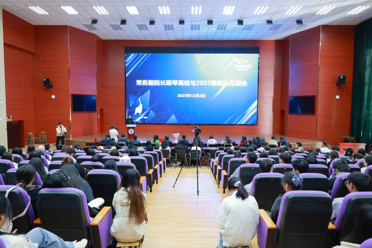 斯琴高娃追忆了学院发展历程,并对在校学生提出殷切期望。作为学院建设的亲历者,斯琴高娃见证了亚洲微电影学院从2013年建院之初的数十人规模,到如今在校生近千人的跨越式发展,学院把“边疆特色、民族特色、时代特色”三个标签越做越亮。面对全体师生,斯琴高娃重温了“尽精微,致广大,泛崇光”的院训精神。她指出,作为“国门大学”的艺术学子,不仅要锤炼专业技能,更要肩负起边疆文化见证者和民族团结推动者的双重使命。要守得住初心,做影像的有心人;要练得真本领、硬功夫;要担得起责任,做有情怀的传播者。她希望同学们通过四年的专业学习,能够练就过硬的专业技能,带着对艺术的敬畏之心、对生活的热爱之情,为未来艺术人生奠定坚实基础。