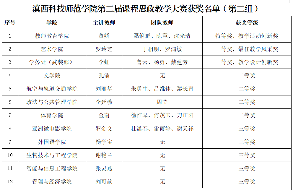 此次大赛以“紧扣建设高质量教育体系主题,深入推动学校教育教学改革,充分发挥大赛的示范引领作用,全面推进课程思政建设”为目标,受到了广大教师的高度关注和积极参与。大赛分为院级初赛和校级决赛,共有来自13个学院和1个部门的31组教师团队报名参赛。经过激烈角逐,最终获特等奖2名,一等奖5名,二等奖10名,三等奖14名。此外,还有教学活动创新奖、教学设计创新奖及最佳教学风采奖各2名。