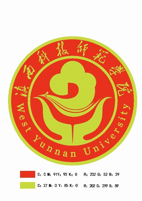第九十四条 学校校旗:红色长方形3号旗(192cm*128cm),左上角配以学校徽志,中间印有“滇西科技师范学院”中文名及英文名,颜色组合分三类:一是红色底白字,二是海蓝色底红字,三是粉色底海蓝色字。正式场合使用红色底白字校旗。